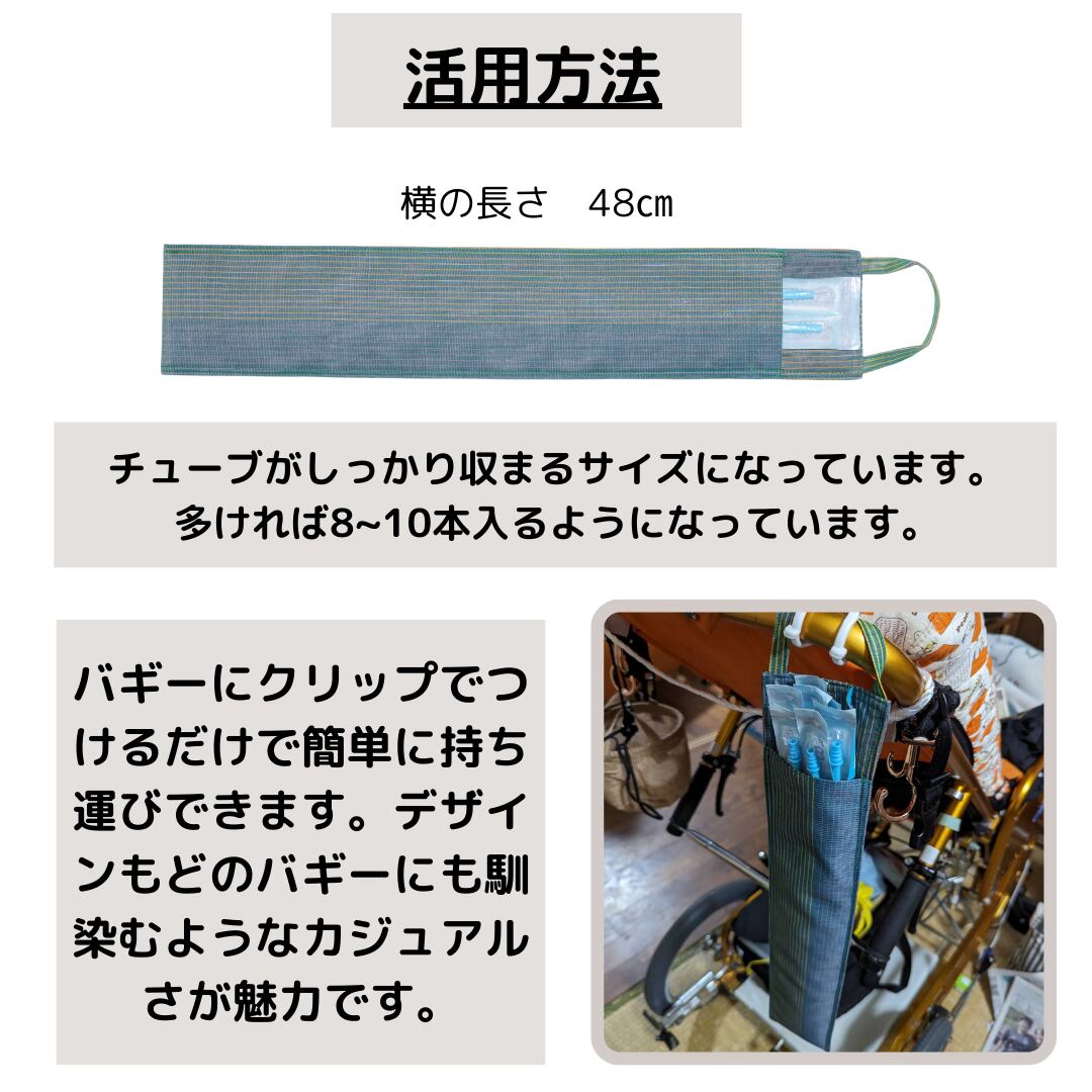 毎日使用するチューブを持ち運ぶのに子供のバギー下の収納部分では医療機器なども載せていたりして毎回取り出しが大変だなぁと感じていました。