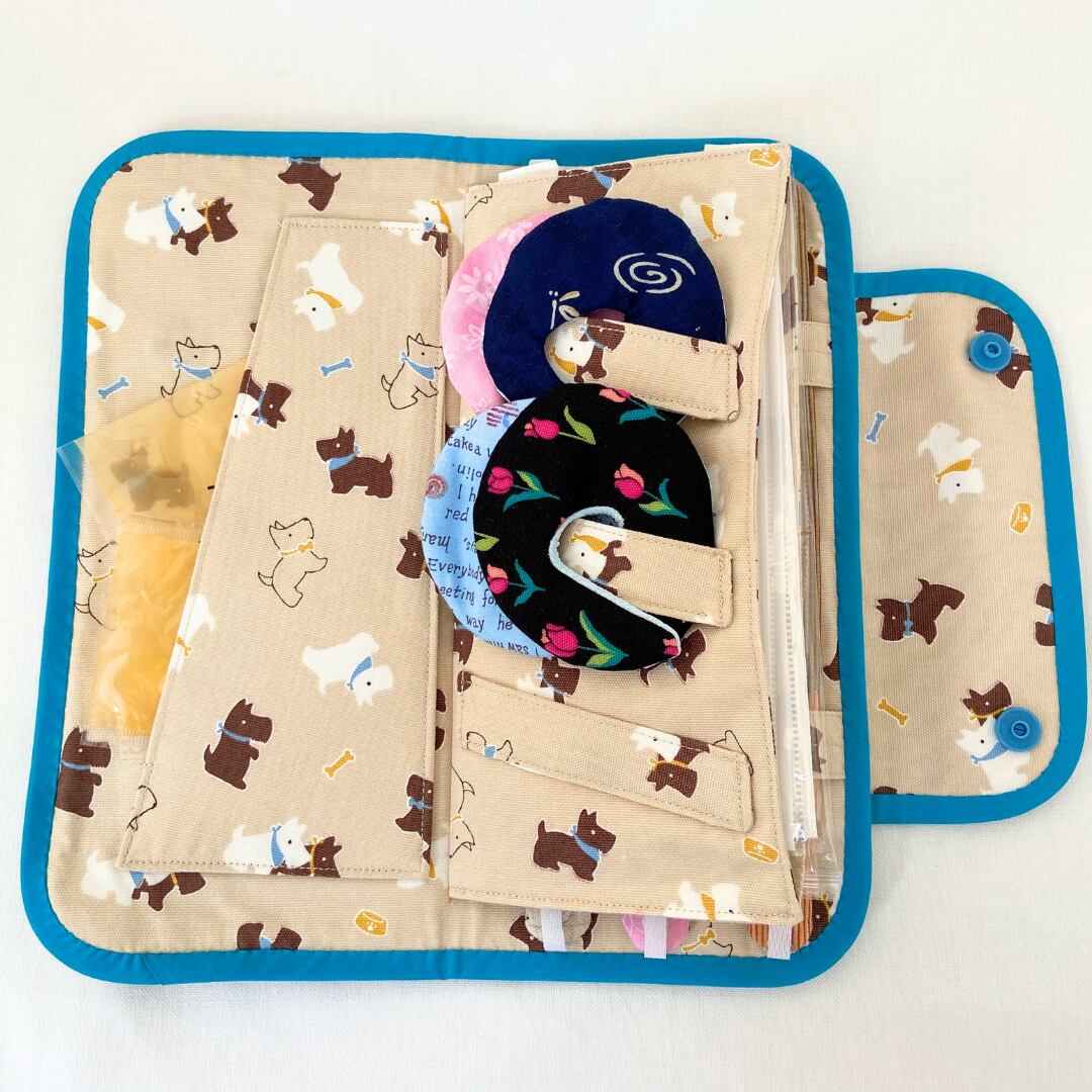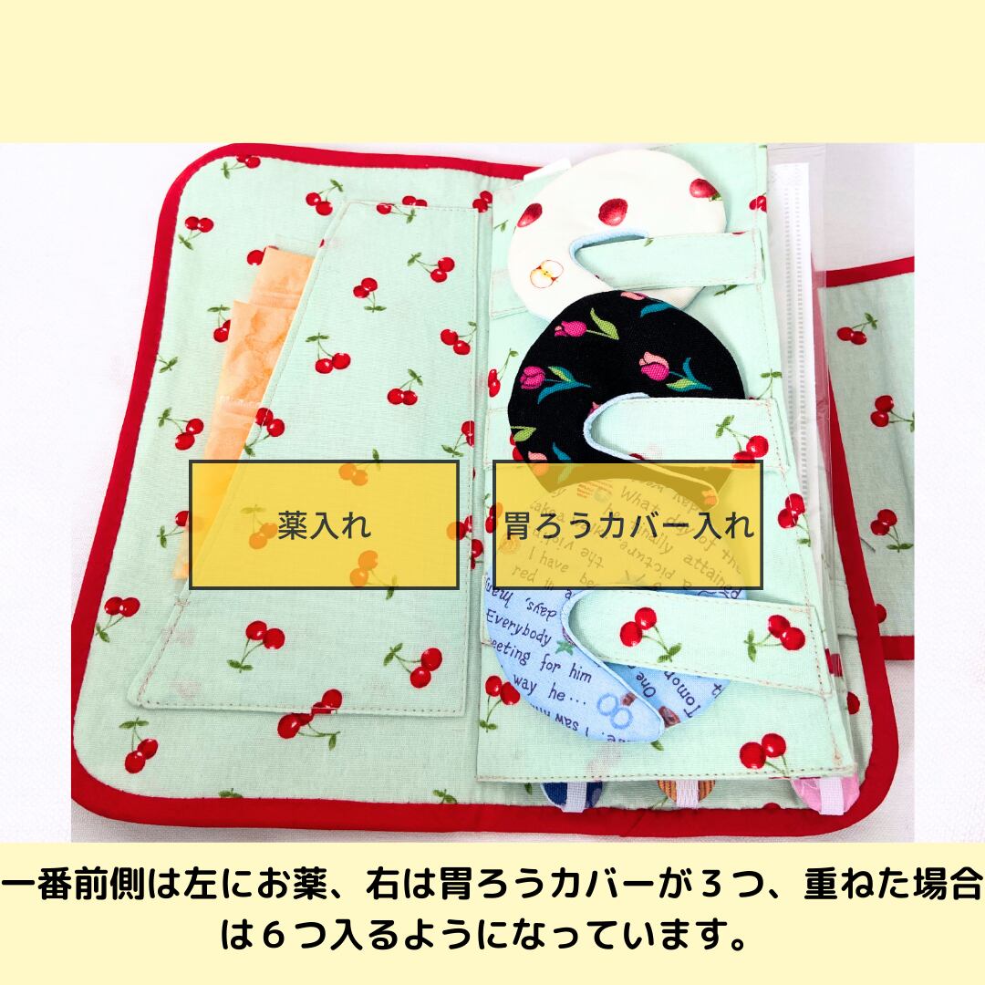 毎日使用するY字ガーゼやお薬、マスク、胃ろうカバー、カニューレホルダーがまとめて収納できる就学用ポーチ♪